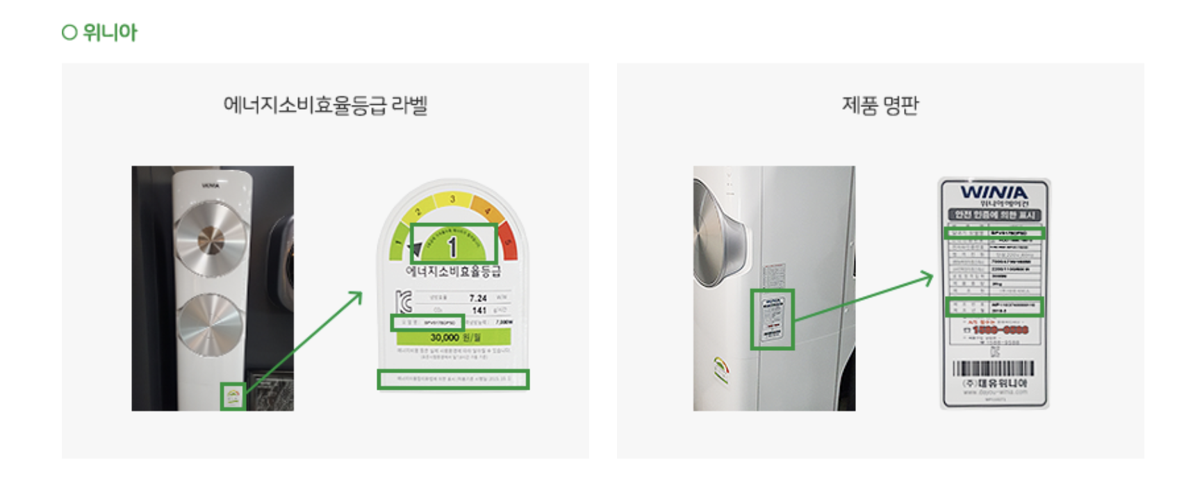 | 제품 인증 | 보증서 또는 제품에 부착된 에너지등급 라벨 사진 |
